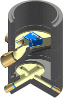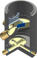 Das MULTRO®-Einbauteil ist das "Herz" des MULTRO®-Schachtes und führt die geschlossene Rohrleitung leicht verschwenkt durch den Schachtinnenraum entlang der Schachtwand. Bei der Herstellung des MULTRO®-Schachtringes wird das Einbauteil monolithisch in Beton vergossen. Das spezielle GFK-Material ist so gefertigt, dass sich eine nicht mehr lösbare Verbindung zwischen Kunststoff-Teil und Beton ergibt, was bei anderen Materialpaarungen nicht gewährleistet ist. |